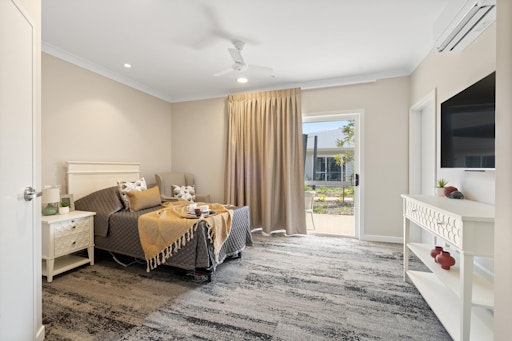 All bedrooms are private and elegantly furnished. They all include a private ensuite, ample storage, personally controlled air conditioning, a large Smart TV, King Single electric bed and external access to a furnished patio area. There are also interconnecting rooms available for couples.The home also has an on-site cafe, hairdressing salon, private dining room, bowling green and community centre, pool room, piano area, many lounge areas and several internal courtyards for resident's enjoyment.