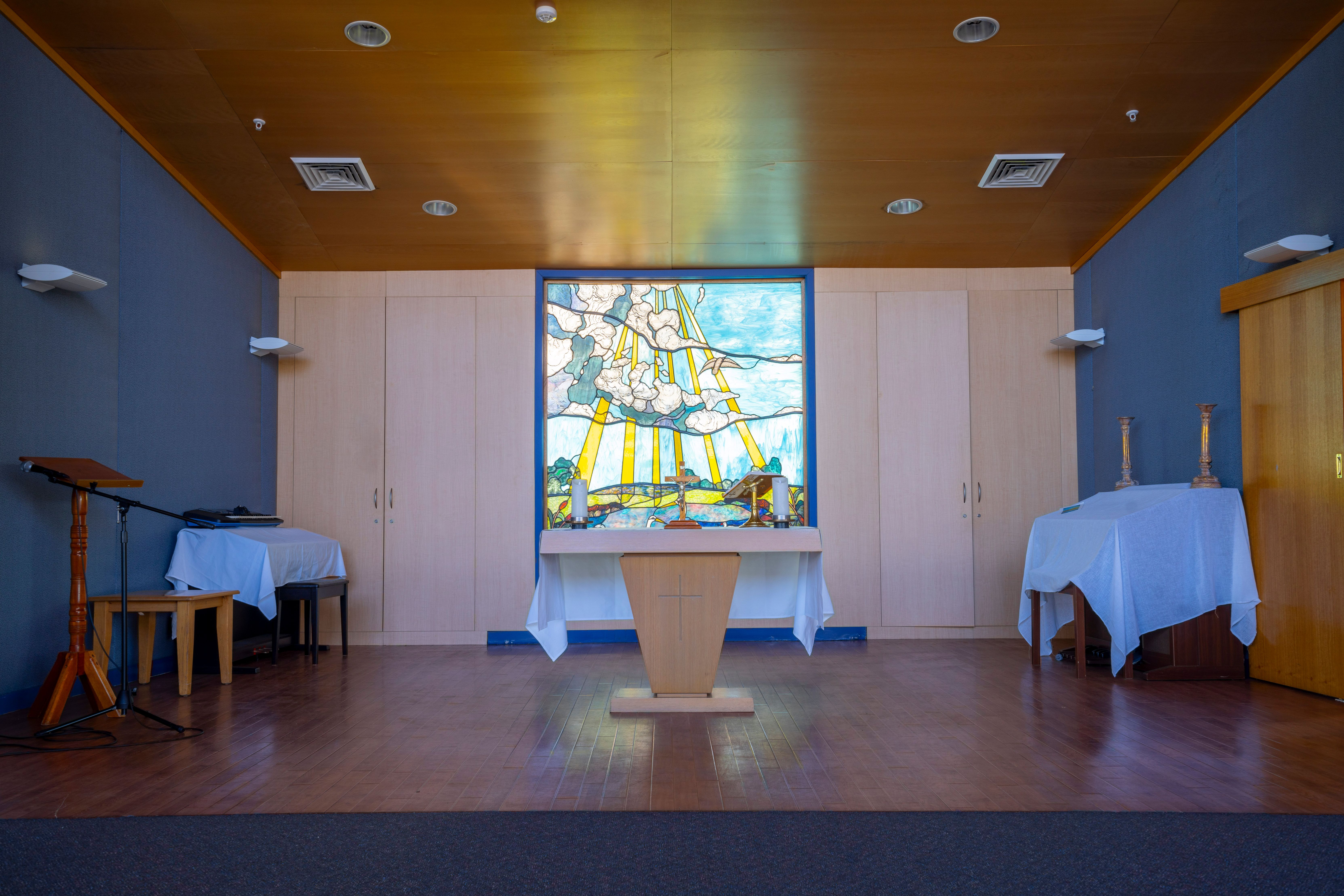 Chaplain who conducts a weekly ecumenical church service