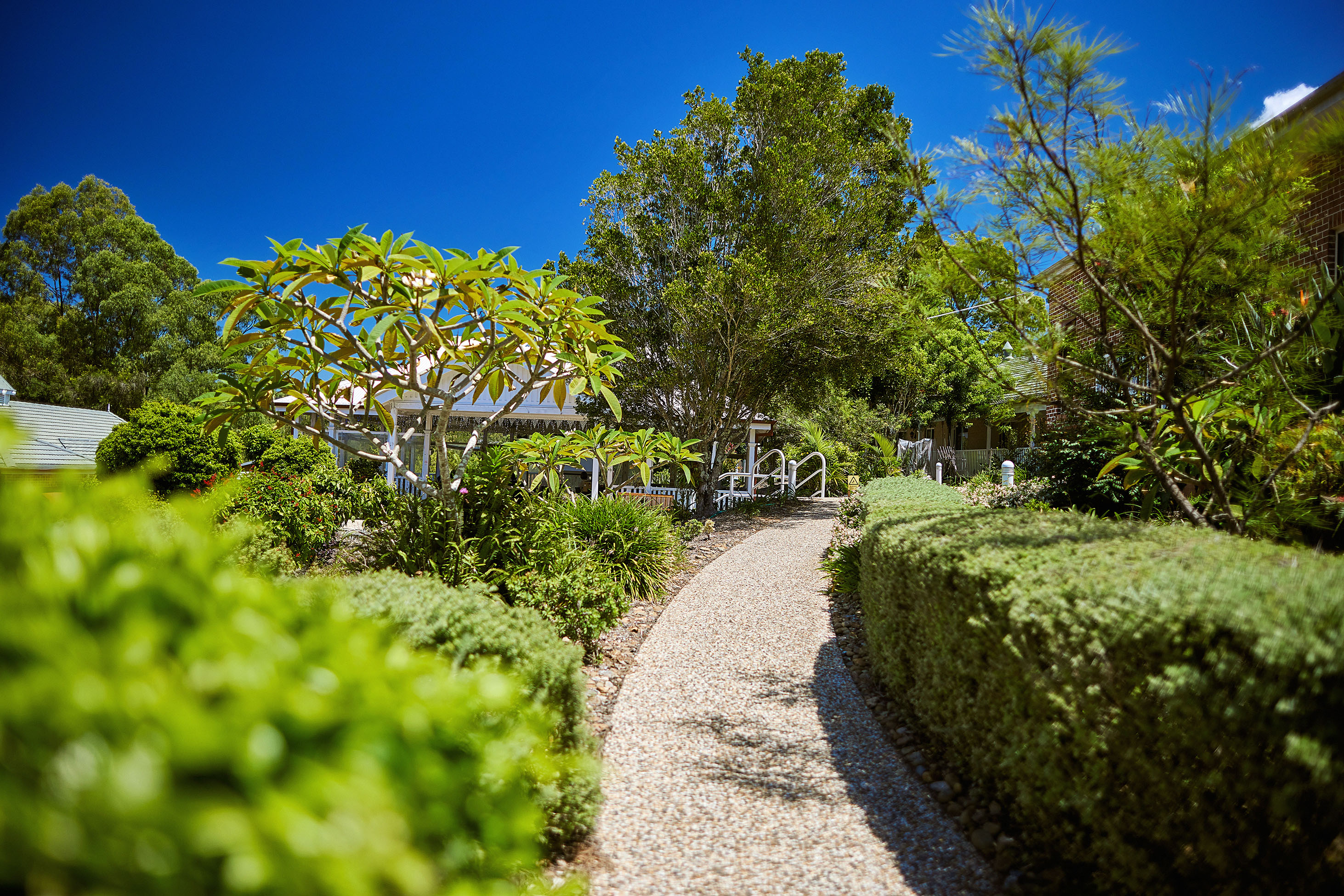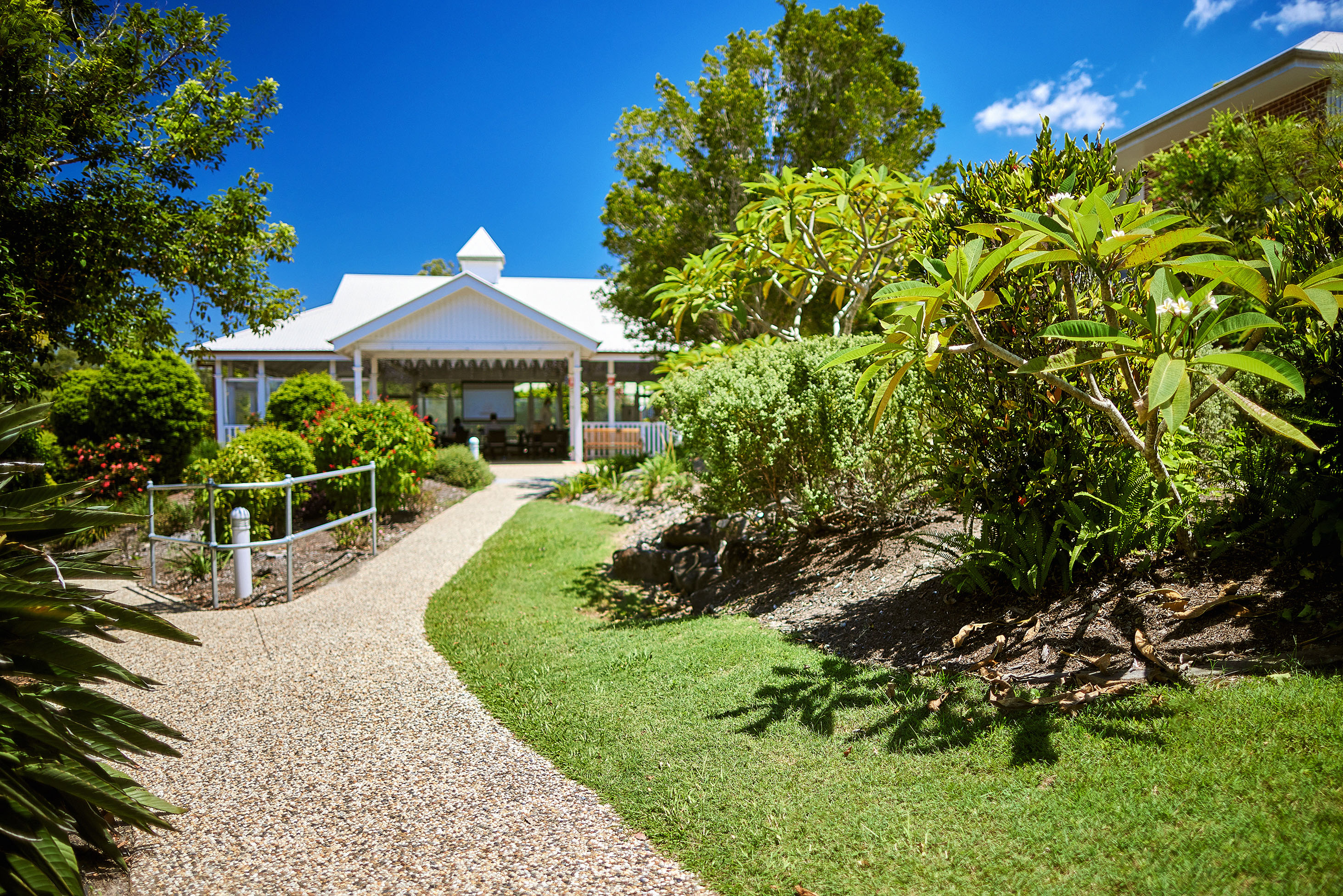 Ashmore Gardens Care Community is located in the quiet suburb of Ashmore. Our residents enjoy the best of both worlds with a leafy, peaceful outlook just 10 minutes from the centre of the vibrant Gold Coast. We offer a relaxing environment with the compassionate and personalised care of 24/7 registered nurses. Our experienced leadership work alongside a capable and confident team to offer residential aged care, palliative care, dementia care and respite care. Allied health professionals also visit regularly. Our state-of-the-art wellness centre enables residents to benefit from a holistic approach to wellbeing, rehabilitation and restorative care in a welcoming environment. We recognise that understanding the big and the little details about how you like to live each day is important to us – so that we can help you feel at home, have the right support and live your best life in our care.There are plenty of peaceful spots to spend time with family and friends, or moments of quiet reflection. Our lush tropical gardens with water features can be enjoyed from many vantage points. All residents’ rooms have easy access to gardens via external covered verandas which wrap around the single level building. Our onsite cafe is a hub for community connections and our family support group regularly gathers here.