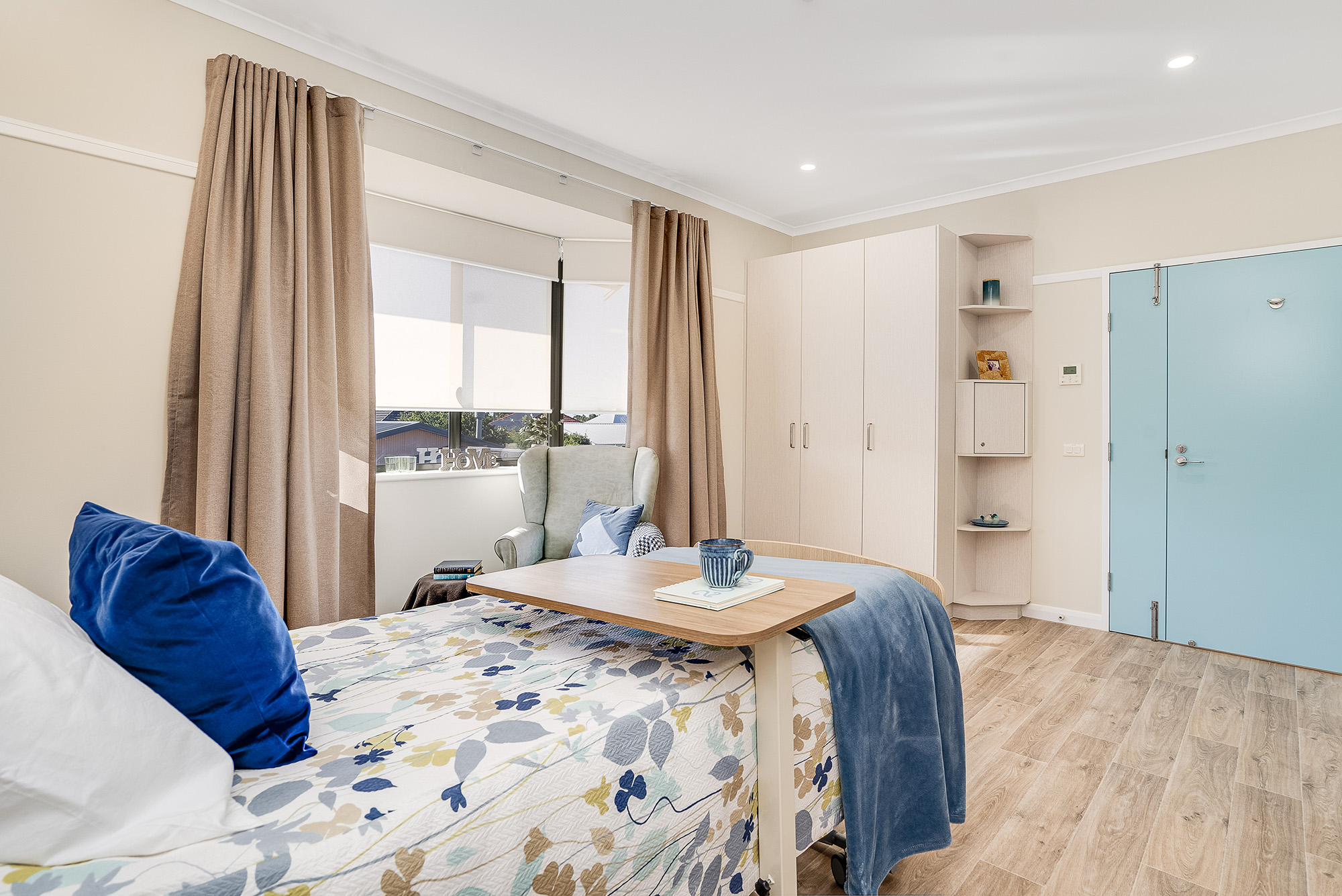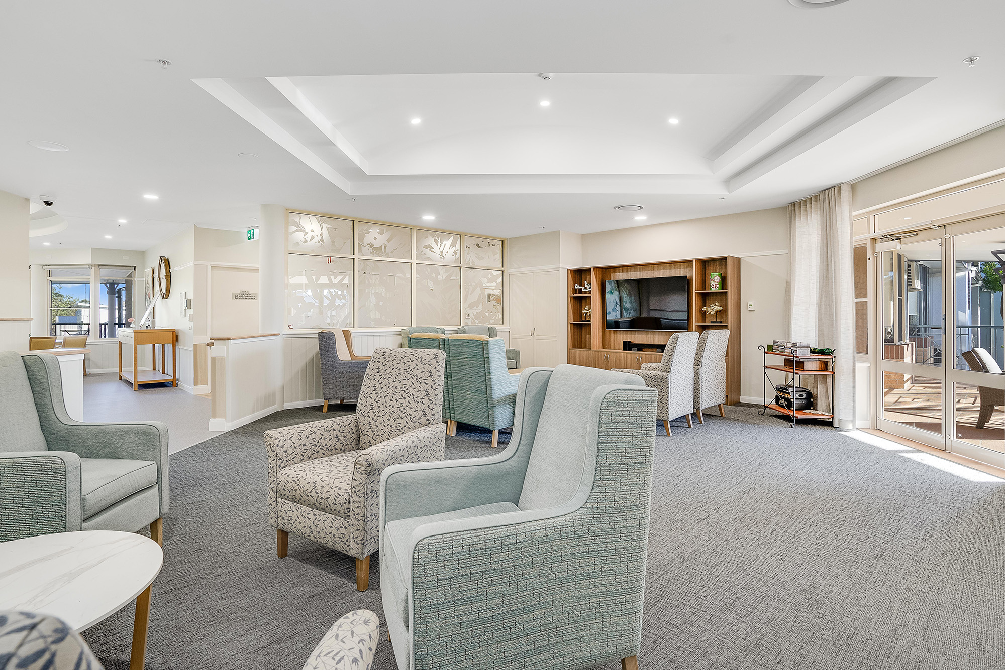 The Home has been designed to capture plenty of natural light and provide easy access to beautiful gardens and peaceful outdoor spaces. The bright modern residential aged care home is tastefully furnished with dedicated dining, lounge and sitting areas as well as smaller tranquil spaces and sunny nooks for residents and their families to use and enjoy. All rooms have: