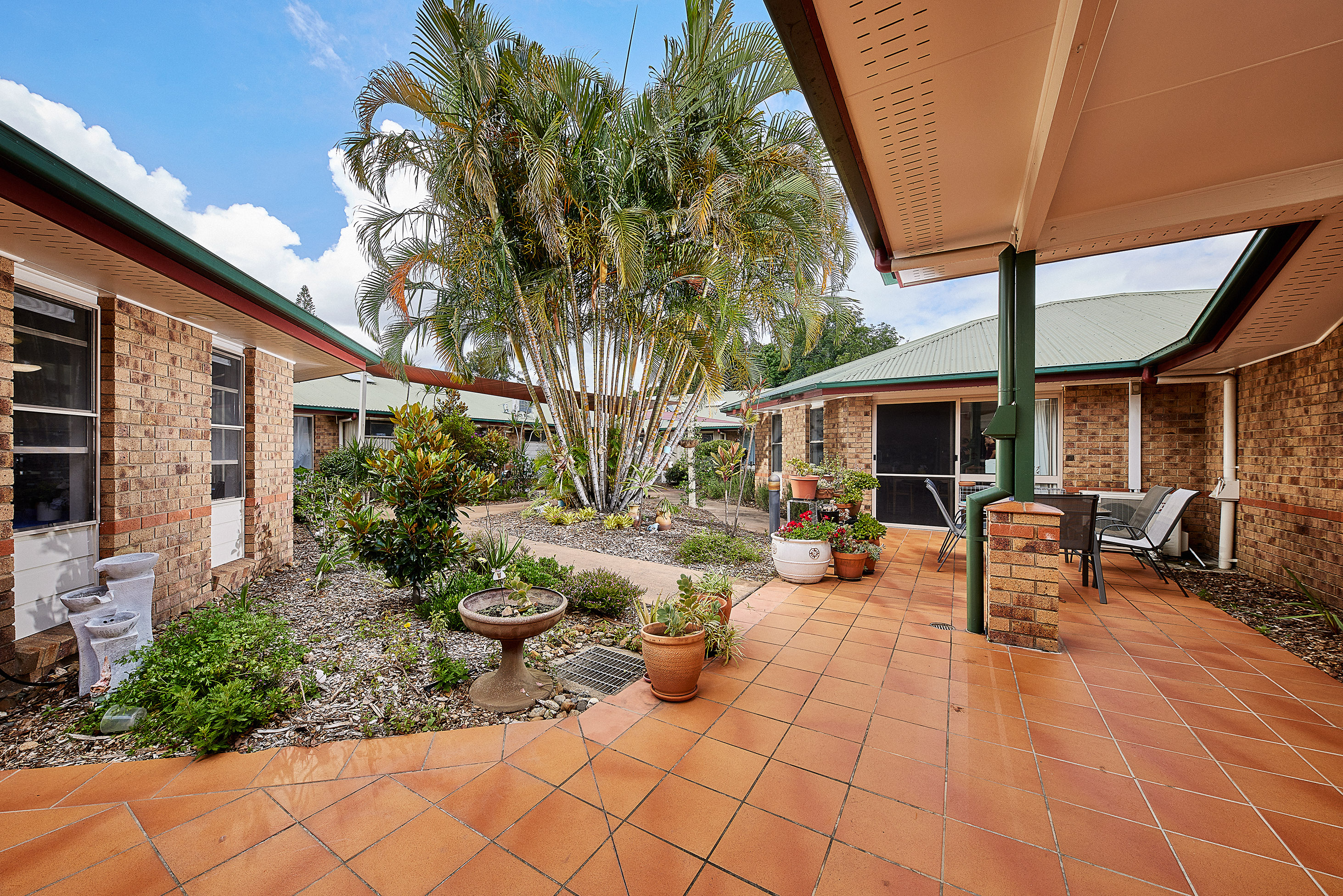 Calamvale Parklands Care Community is located less than 30 minutes south of Brisbane CBD, our Care Community is nestled in a quiet residential street bordered by parkland. Attractively landscaped courtyards form the heart of each building and provide a wonderful location for socialising or quiet reflection. We have a strong volunteer community and our diverse mix of cultural heritage is a point of connection for our residents and team, who enjoy sharing and celebrating their cultures. We offer a relaxing environment with the compassionate and personalised care of 24/7 registered nurses. Our experienced leadership work alongside a capable and confident team to offer residential aged care, palliative care, dementia care and respite care. Allied health professionals also visit regularly. Our memory care neighbourhood provides an environment custom-designed to support the individual needs of residents who are living with dementia. We recognise that understanding the big and the little details about how you like to live each day is important to us – so that we can help you feel at home, have the right support and live your best life in our care.Whether it's walking through our bright tropical gardens or relaxing in our shaded courtyards, there are plenty of ways to enjoy spending time outdoors. We have an entertainment venue for social gatherings inside and our ladies' group delight in brightening up our Care Community with their beautiful handmade floral arrangements.It’s an environment where you’re free to enjoy your interests, independently or with others, continue to learn and try new things, and participate in Calamvale Parklands life – so you can enjoy your day, your way.